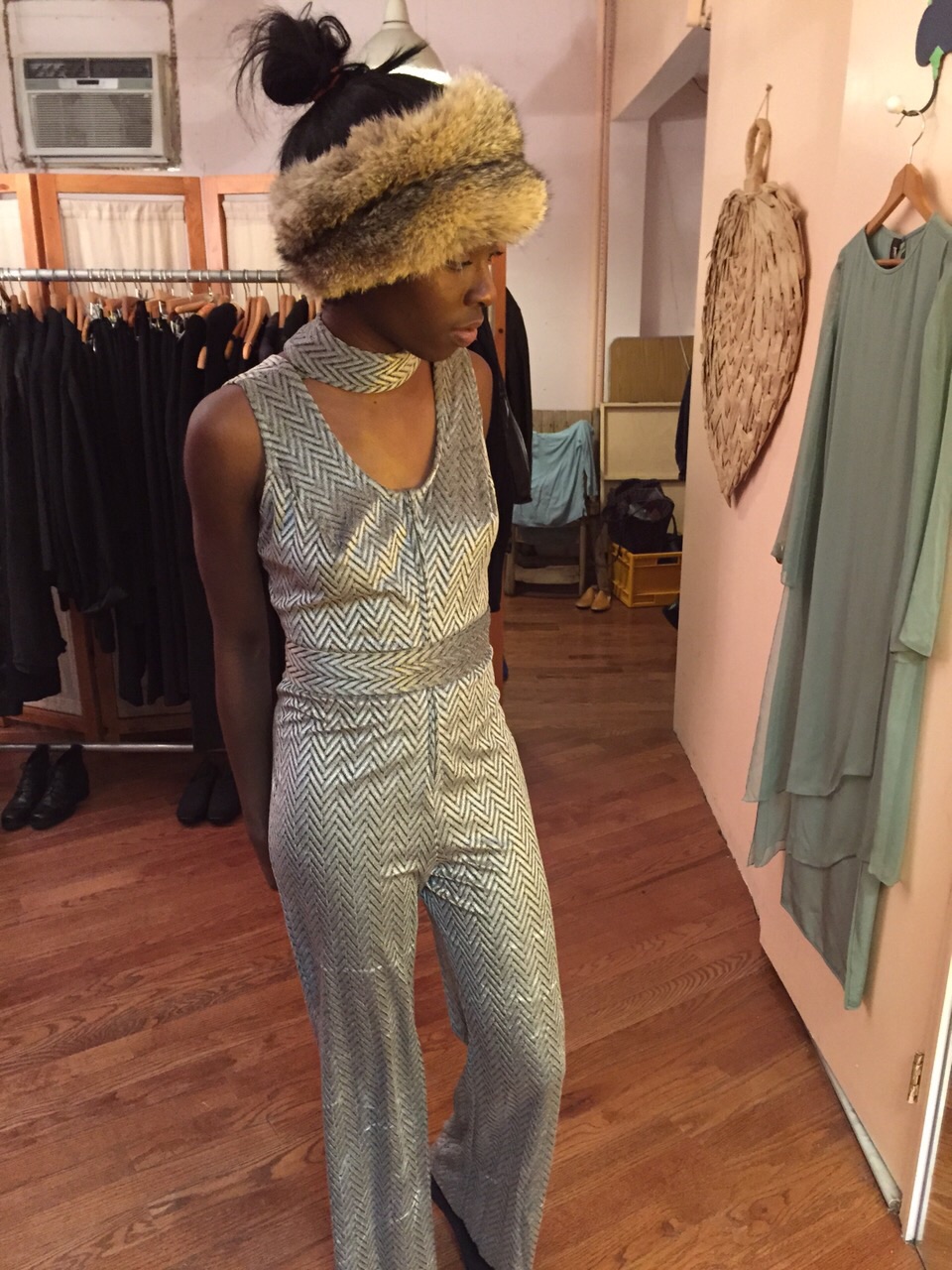 On Sunday I discovered this new consignment boutique in Williamsburg called Horizons. I decided to try on this metallic velvet jumpsuit - was completely obsessed :)